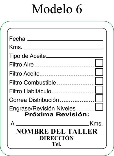 Pegatinas publicitarias autoestáticas para el control de mantenimiento en vehículos a motor, coches, furgonetas, camiones autocares, etc. es una pegatina para pegado interior con doble visión, se ve tanto desde dentro del vehículo como desde fuera, la parte exterior es impresión a todo color y la parte interior es impresión a una sola tinta, el vinilo es removible, lleva un pegamento muy suave muy facil de retirar pero lo suficientemente fuerte como para que no se caiga